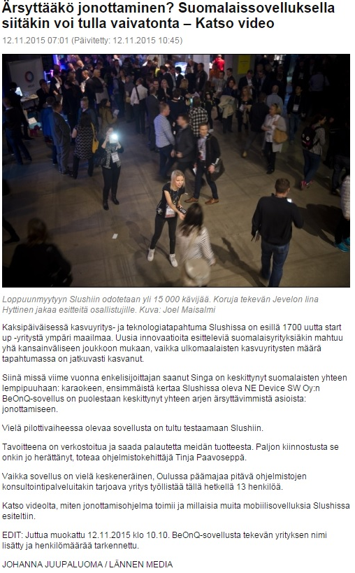 We introduced BeOnQ in the fantastic Slush 2015 conference in Finland! We are still buzzing from
